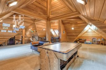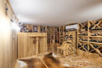 Основной дом: Цокольный этаж: постирочная, санузел, спортзал, кинотеатр, винный погреб с кладовой. Первый этаж: кухня-столовая, гостиная с камином, терраса, санузел, прихожая. Второй этаж: три спальни, мастер-спальня с санузлом и гардеробной, санузел. Мансарда:игровая, кабинет.