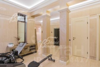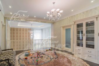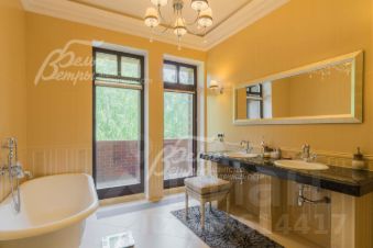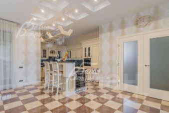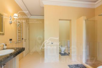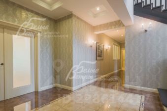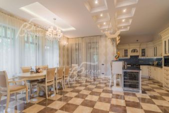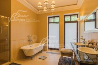Описание внутренней отделки: дизайнерская отделка преимущественно в светлых и пастельных тонах с использованием дорогих и натуральных материалов, презентующих экстерьер во всем его великолепии. Стены: американские бумажные (экологически чистые) обои, венецианская штукатурка, произведены работы по художественной и декоративной отделке стен и потолков из натурального гипса и карнизов. Пол: испанский и итальянский керамогранит (с водяным подогревом), натуральный штучный дубовый паркет с художественными элементами, крыльцо - натуральный гранит с термообработкой для противоскольжения, террасы дома выложены террасной доской (Deking). Широкий лестничный марш из массива дерева ценных пород с двухсветным освещением, с деревянными перилами, ступени из МДФ с эмалью, ширина 1,2 м. Подвесные многоуровневые фигурные потолки с кессонами (в кабинете, в холле и столовой) и карнизами. Сантехника - Италия, Германия марок Devon&Devon,Gessi,Hans Grohe, Joop!, Jacuzzi, Huрpe и т.д.), мойка - литой мрамор. В доме все разведено "под ключ", вся арматура, разводка воды и отопления выполнены TECE (Германия), TM (Италия). Радиаторы Kermi, внутрипольные конвекторы (где остекление от пола). Электрика ""Lengrand"" дизайнерской серии. Двери межкомнатные из массива дерева ценных пород ручной работы с покраской высотой 2,15 м. Подоконники из натурального полированного гранита. По периметру дома выполнена декоративная фасадная подсветка (Wever & Dukre производство Бельгия). Люстра в камином зале 800 тыс. руб., по прайсу в единственном экземпляре. Разведены выводы под технику и динамики в каминном зале и в SPA-зоне. Сауна с печкой "Harvia", паровая баня отделана мозаикой из стекла..
