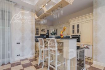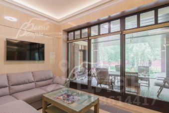Мебель, оборудование: дом полностью меблирован. Фасады кухни из массива ольхи (индивидуальный дизайн ручной работы), столешница - искусственный камень. Кухня укомплектована бытовой техникой SMEG, с островом-барной стойкой со встроенным винным холодильником Liebherr. Установлены люстры производства Италия (Belart,Italamp и т.д.) из муранского стекла и хрусталя, некоторые выпущены в единственном экземпляре. Вся мебель точно подобрана под интерьер дома, производство Италия. Кабинет делался на заказ из массива дерева ценных пород. Спальный гарнитур из массива дуба с кроватью extra size размером 2,2х2,4 м (США) стоимостью 1 млн.руб. На террасе мебель из настоящего ротанга, на патио диван-качели из массива дерева (500.000 р.)..