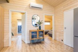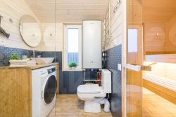 Дом отапливается электричеством - теплые полы в гостиной и санузле. В каждой комнате отапливается конвекторами.