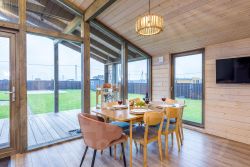 Панорамный дом для постоянного проживания с высокими потолками ( нижний внутренний край - 2 метра; внутренняя высота в коньке 3,5 м) .