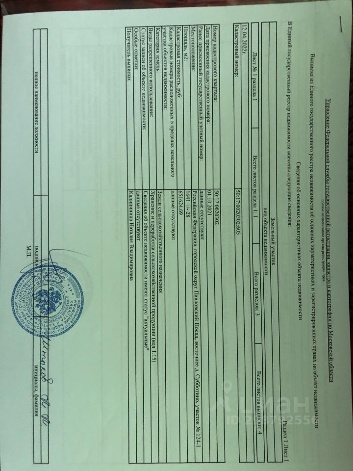 Кадастровый номер участка 50:17:0020302:*** указал продавец