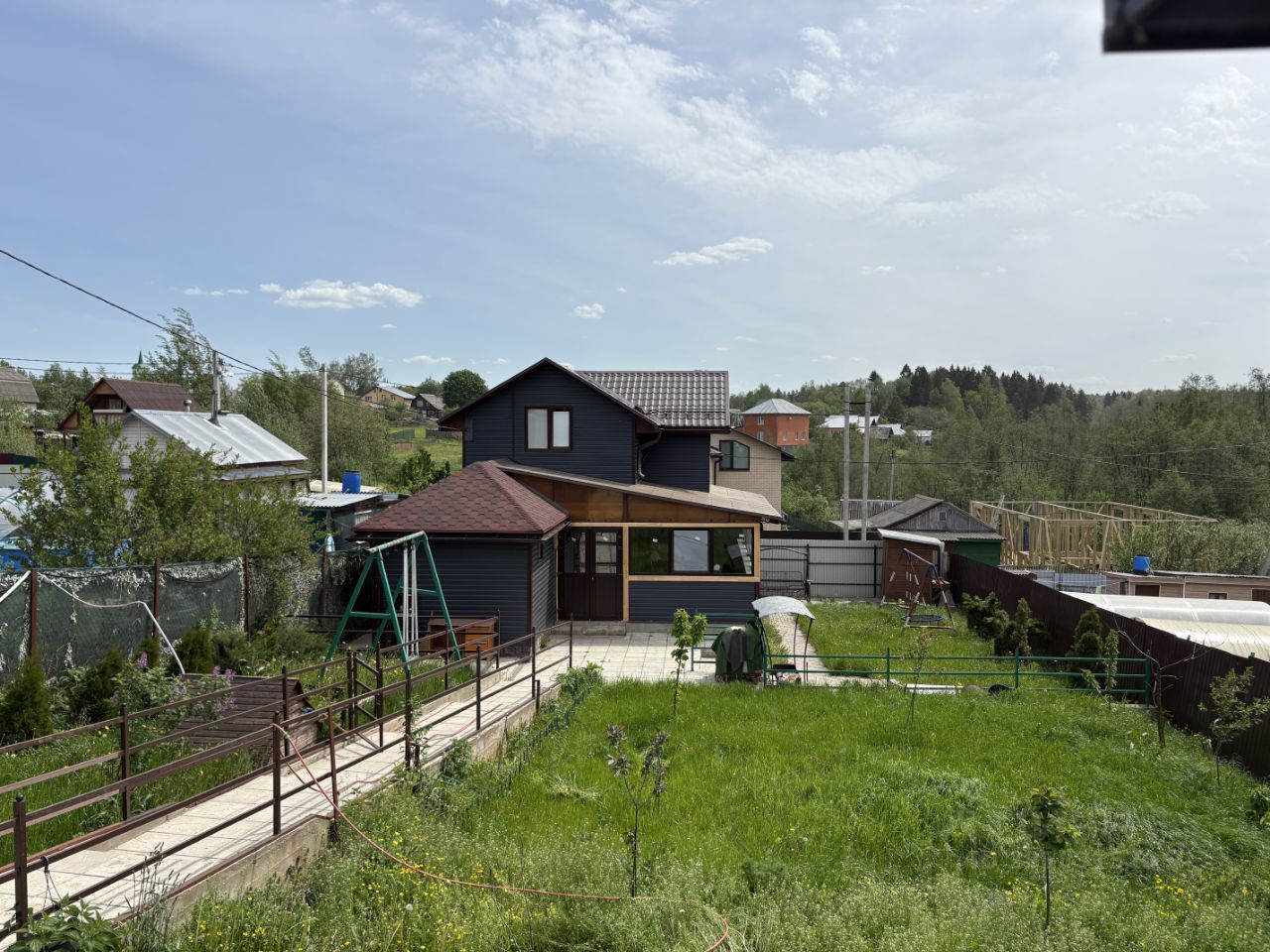 Участок 5,0 соток с возможностью расширения до 7 соток, имеет небольшой естественный уклон. По периметру огорожен забором из профлиста, установлены автоматические ворота, оборудована площадка для автомобилей, построен хозблок для хранения.