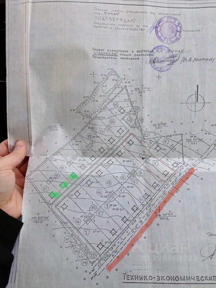 Всего участков в СНТ - 25, из них на продажу - 2, оформлены в собственность (одно физ. лицо, имеются св-во о регистрации). На плане (фото) номера 17, 18 (выделены зелёным цветом).