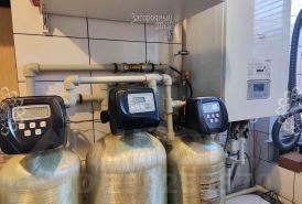 Коммуникации: электричество 15 кВт, магистральный газ, отопление от американского газового котла, который обогревает воздух и разводит воздуховодами по всем помещениям. Второй газовый котел с бойлером косвенного нагрева работает на подогрев системы горячего водоснабжения и на "теплые полы", смонтированные в коридоре и санузлах. Водоснабжение от скважины 63м, установлена многоступенчатая система очистки. Канализация - центральная. Интернет - оптоволокно. Есть система охраны. Водосливная система с кровли выведена в дренажную систему, которая сделана по периметру дома и далее