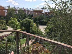 Таунхаус включает в себя три этажа и просторную мансарду с высоким сводом. Есть пара балкончиков. Имеется два выхода. Один к месту парковки для двух автомобилей и широкой лестнице. Второй выход ведёт на собственный участок земли, откуда открывается очень милый вид на внутреннюю территорию комплекса. Здесь великолепный ландшафтный дизайн, тропинки для прогулок и оборудованная детская площадка. Тишина, прекрасные соседи, статусная и ухоженная территория создают уникальный комфорт. Таунхаус без ремонта. Сделана реконструкция лестничной шахты: установлена удобная бетонная лестница.