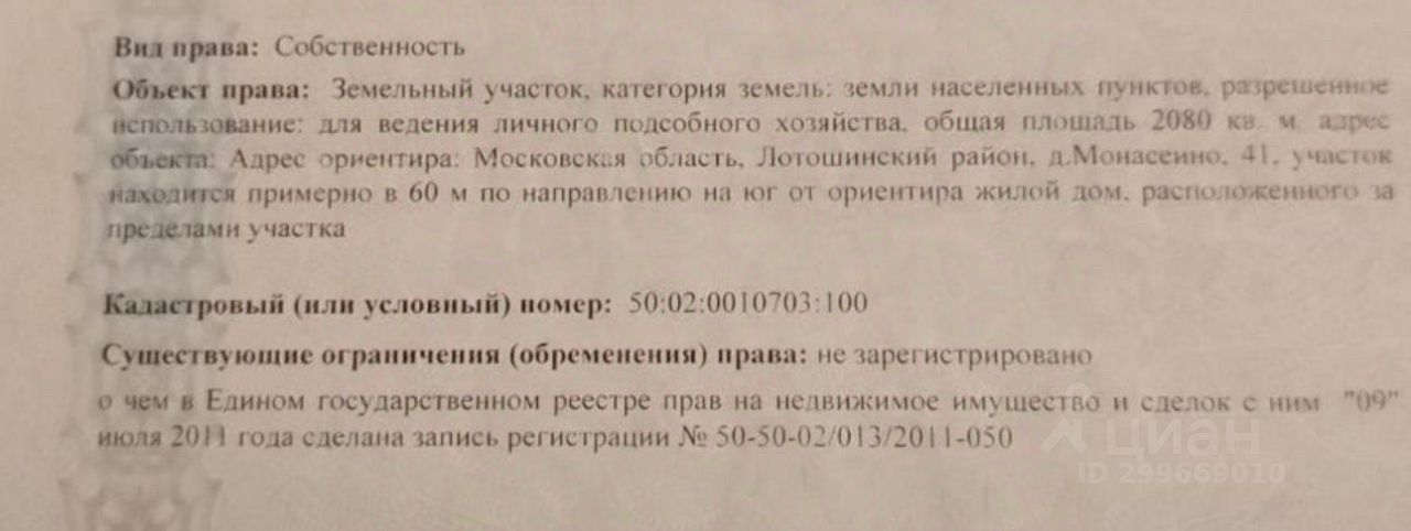 Кадастровый номер участка 50:02:0010703:*** указал продавец