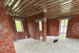 Материал стен: двойной щелевой красный кирпич Wienerberger марки 150, утеплитель - пенополистирол 50 мм, фасадная плитка Окна: стеклопакеты ПВХ (2-камерные толщиной 55 мм КВЕ). Кровля: мягкая гибкая черепица Shinglas Джайв.