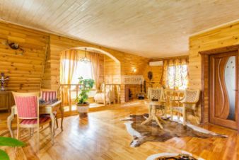 - Второй дом выполнен в экостиле, деревянный, со встроенной баней, 3 спальни, возможностью сделать биллиардную, с подполом и балконом.