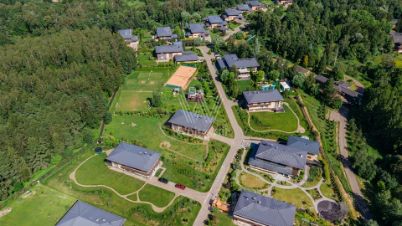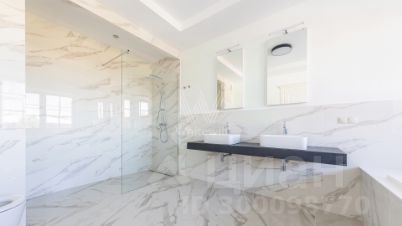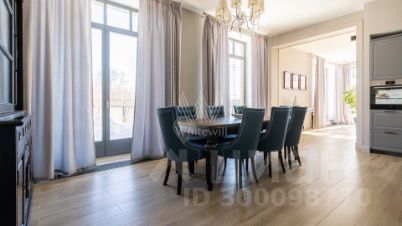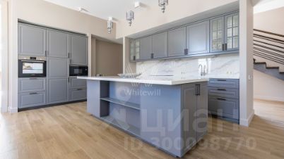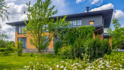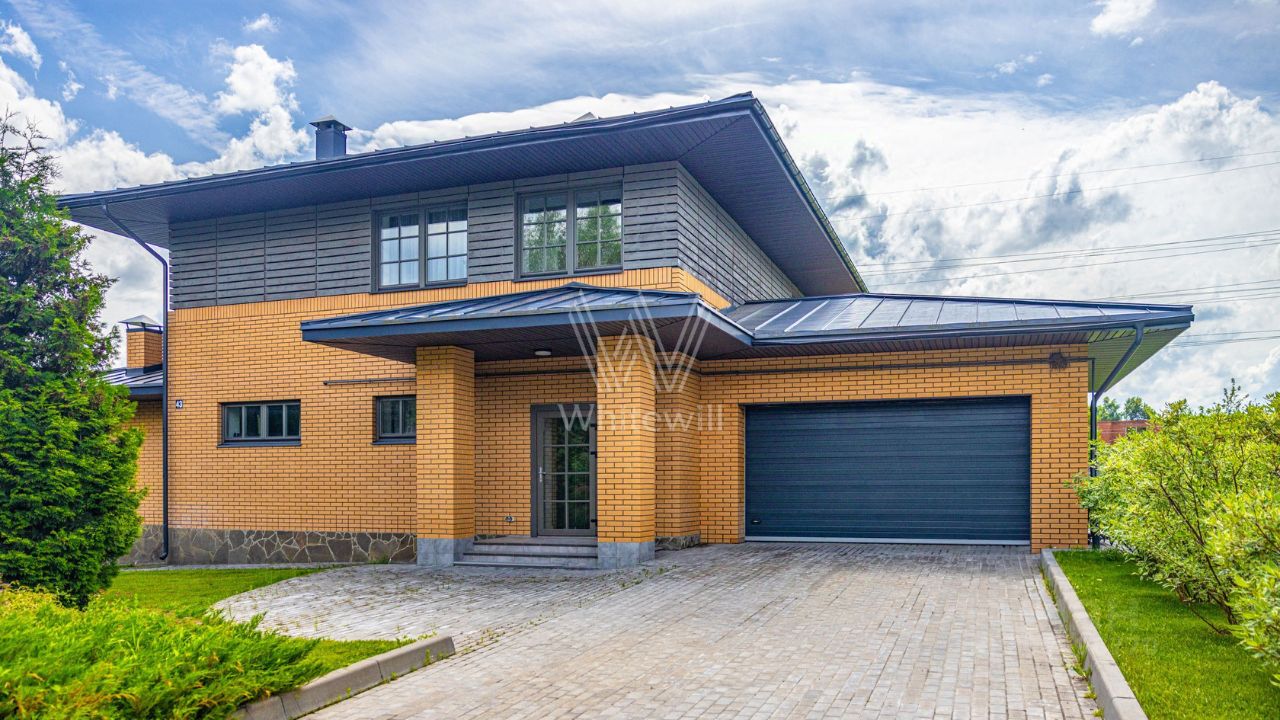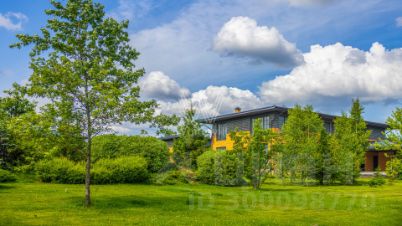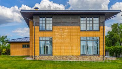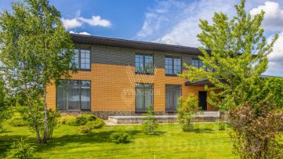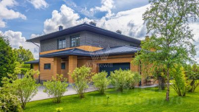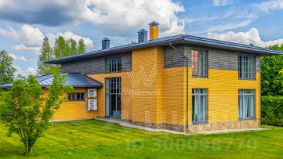 Варварино. Загородный дом площадью 422 м² построен на просторном полевом участке 22 сотки. Фасад здания облицован бежевым клинкерным кирпичом и декорирован вставками с фактурой дерева. Интерьер выполнен в современном стиле, в отделке использованы на стенах краска и вставки из высококачественных обоев, на полу итальянская плитка и инженерная доска, установлены дубовая лестница и двери с натуральным шпоном. Дом укомплектован встроенными шкафами и гардеробными. Планировка резиденции включает 6 спален, гостиную с камином, кухню-столовую, кабинет и террасу, на которой можно обустроить зону барбекю. В контуре коттеджа предусмотрен гараж на 2 машины.
