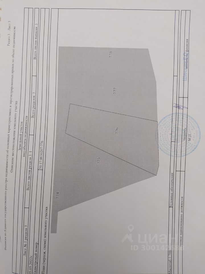 Кадастровый номер участка 50:17:0030207:*** указал продавец