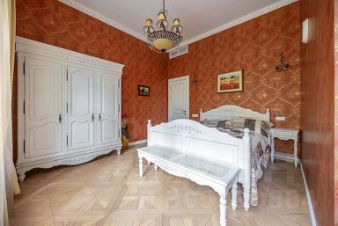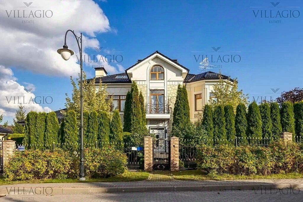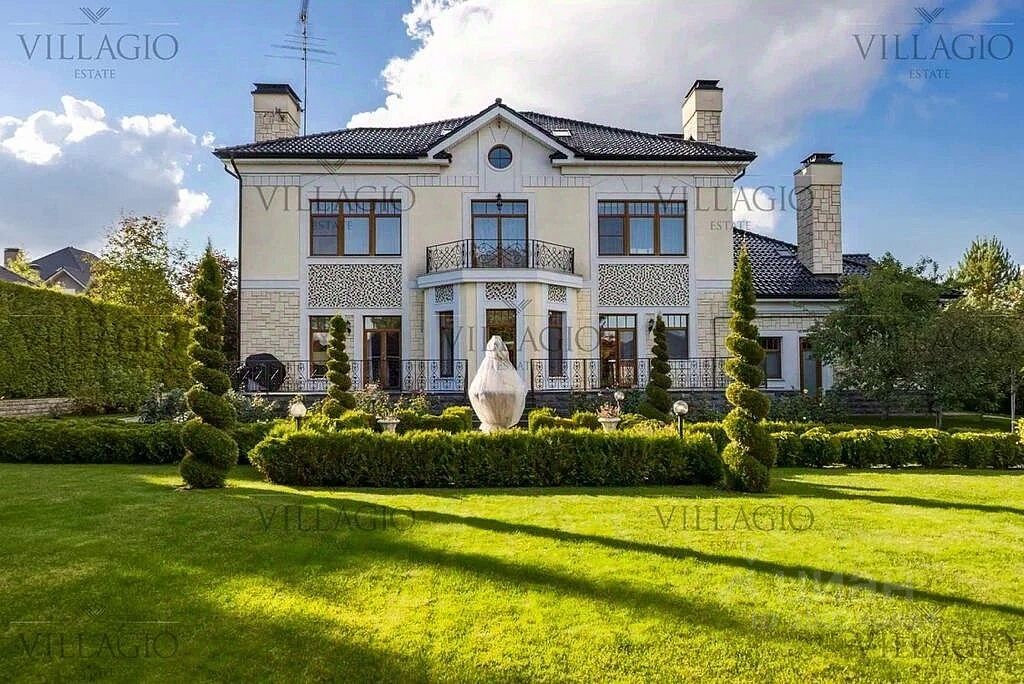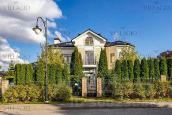 В элитном КП "Гринфилд" выставлен на продажу трёхэтажный загородный дом рядом с озером. Общая площадь здания составляет 700 кв. м. Особняк построен из кирпича, стиль классический.