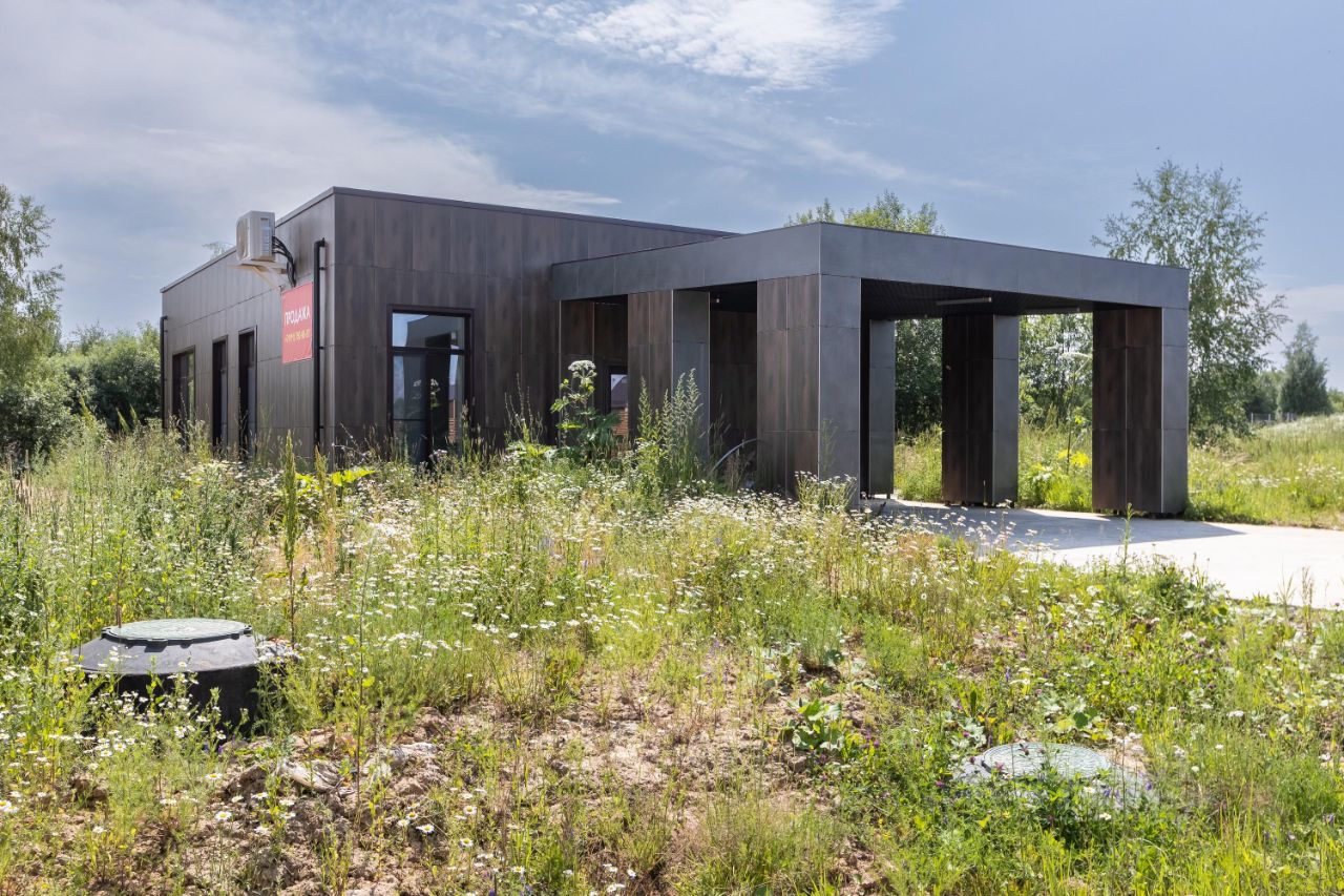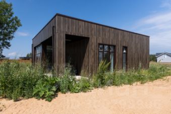 Современный одноэтажный дом в закрытом охраняемом посёлке. Просторная гостиная с панорамными окнами, кухня-столовая, 2 спальни, гардеробная, ванная, постирочная.