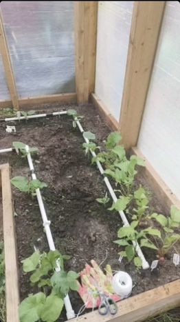 На участке есть теплица с высокими грядками и трубами для автополива, плодоносящие яблоня и малина. Участок ровный и сухой, не отягощен лишними постройками и насаждениями. Посажен газон. Парковка отсыпана известняком.