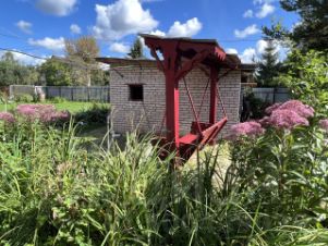 Постройки на участке: каменный жилой дом, гараж и баня из кирпича, хоз. помещение для садового инвентаря, площадка для отдыха и мангальная зона.