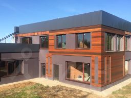 Дом выполнен из качественного Керамического блока wienerberger porotherm 38 + утепление 100 мм, монолитный армирующий пояс. Цокольный этаж полностью монолит, толщина стен 40 см, почти бомбоубежище. Перекрытия ж/б плиты. Строил для себя, добротно и с любовью, на материалах не экономил. На ключевые этапы строительства приглашался строительный аудит (т.н. технадзор), есть отчёты, также фото этапов строительства. Есть красивый дизайн-проект фасада и частично интерьера.