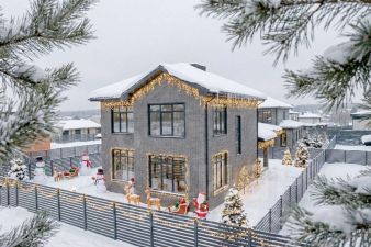 Дом из газосиликатного блока Bonolit, снаружи отделан термопанелями с клинкером Парадис (есть возможность исполнения в клинкере серого цвета), кровля металлочерепица производства Grandline, установлены пластиковые окна Rehau, установлено внешнее освещение дома. Гарантия от строительной компании на все узлы дома — 1 год!