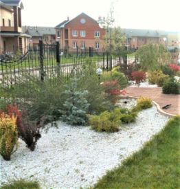 Площадь участка позволяет разместить на нем спортивные и игровые площадки для детей. Высажены плодовые и декоративные деревья и кустарники, красивые цветы, имеются прогулочные дорожки и огород.