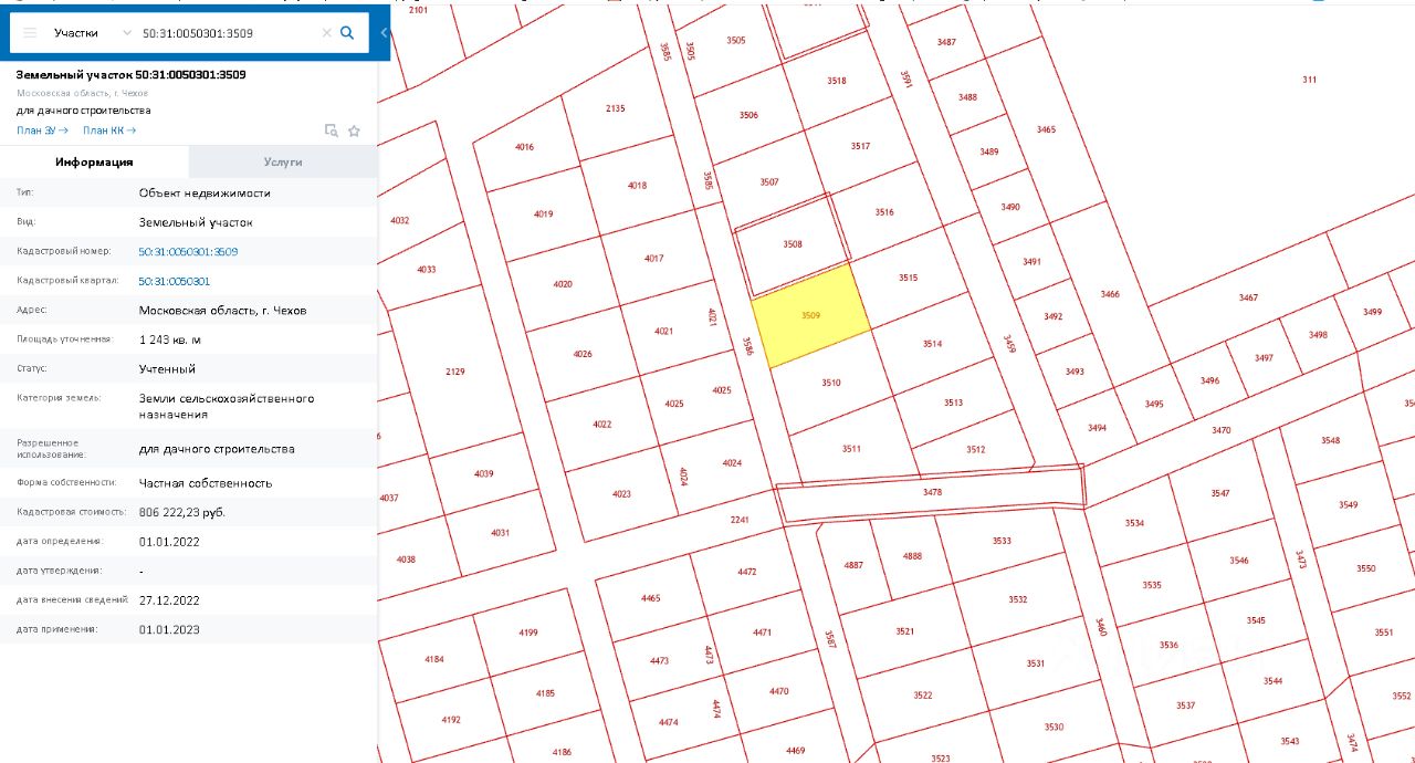 Кадастровый номер участка 50:31:0050301:*** указал продавец