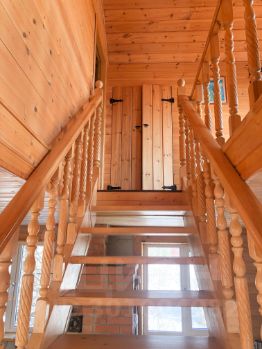Частично сделан красивый качественный ремонт с утеплением, с использованием дорогих материалов, удобная пологая лестница, красивая печь с камином по индивидуальному проекту. В угловых нишах на втором этаже сделаны встроенные шкафы, что позволяет минимизировать мебель.