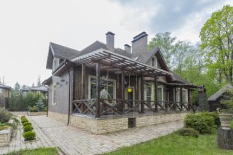 Резиденция является оригинальным архитектурно-ландшафтным решением, все здания построены из натуральных природных материалов (керамические блоки, облицовочный кирпич, декоративный камень).