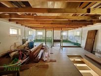 Фундамент монолитная плита, перекрытия деревянные балки.