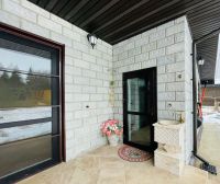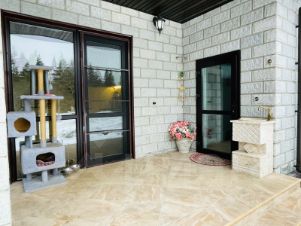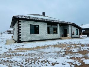 Дом новый из очень крепких и очень тёплых бетонных теплоблоков. Вокруг дома монолитная отмостка шириной 1, 5 метра с зубом блокирующим поступление воды под фундамент. Ещё сделан бетонный въезд в гараж.