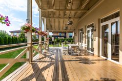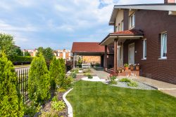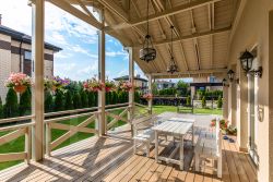 Особенностью проекта является просторный первый этаж с высокими потолками и большой площадью остекления. Участок 12 соток правильной формы расположен вдали от дорог, все соседи построены