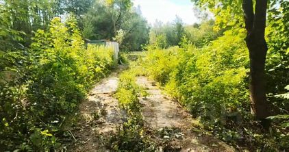 К границе участка ведёт асфальтированная дорога, напротив новая детская площадка.