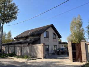Дом общей площадью 215 кв.м., два этажа. Фундамент свайно-ростверковый. Стены - автоклавные газобетонные блоки "Ytong", толщиной 400 мм. Перекрытия - сборные железобетонные плиты "ПБ". На каждом этаже имеется железобетонный армопояс. Кровля - черепица "Braas", с утеплителем "Paroc" толщиной 200 мм. Фасад - декоративная штукатурка "Terraco" со вставками из керамогранита. Цоколь облицован декоративным камнем. Входная группа облицована клинкерной плиткой. Парковка, терраса и отмостка выложены тротуарной плиткой.