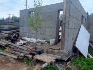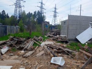 и возможно ниже есть нюансы над участком ЛЭП . на участке дом недострой частично сгорел стены бетон арматура, пенопласт, арболит .