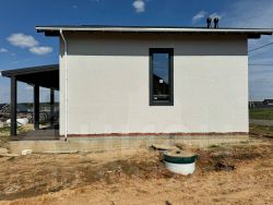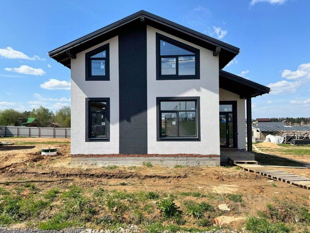 Двухэтажный дом из газоблоков на свайно-ростверковом фундаменте. В предчистовой отделке.
