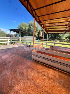 На участке газон, плодовые деревья, виноград, теплица. Барбекю зона - навес, с огромным столом и лавочками, выполнение из качественных материалов ( брус, металл).