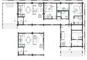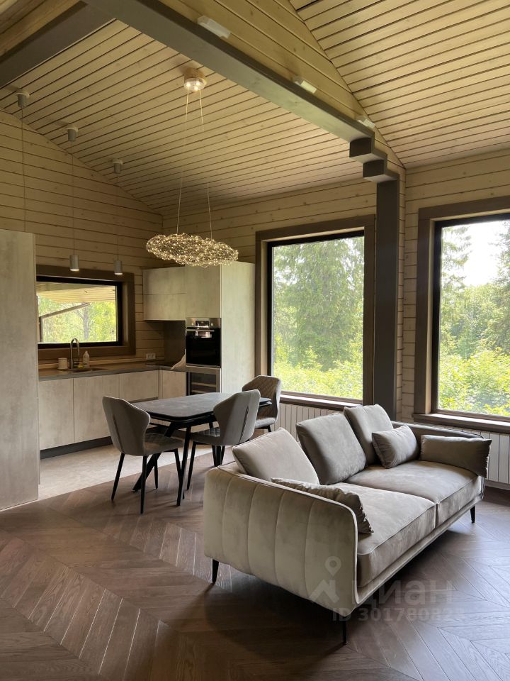 Гостиная с кухней (новая кухонная техника Bosch), 2 спальни, 2 санузла, русская баня с дровяной печью + помывочная с зоной отдыха.