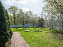 Клумбы, плодовые деревья, хвойники и зона отдыха с качелями