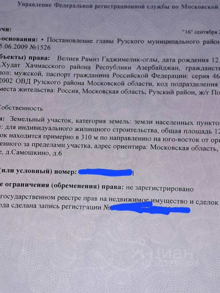 Кадастровый номер участка 50:19:0030215:*** указал продавец