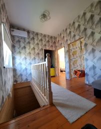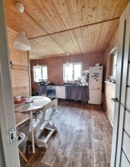 Дом полностью готов для полноценной жизни семьи (живём с 2мя детьми). Заведено электричество 15кВт. Основное отопление электрическое; резервное камин на 12 кВт (хватит, чтобы устроить "Ташкент" при любом минусе).