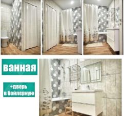 На кухне: индукционная плита (4 конфорки), посудомойка 60 см, духовка, холодильник.