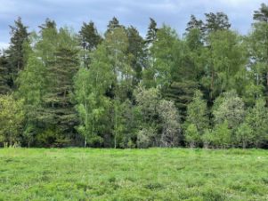 Участок вытянут вдоль забора, правильной прямоугольной формы, ровный, сухой, частично огорожен соседским забором.
