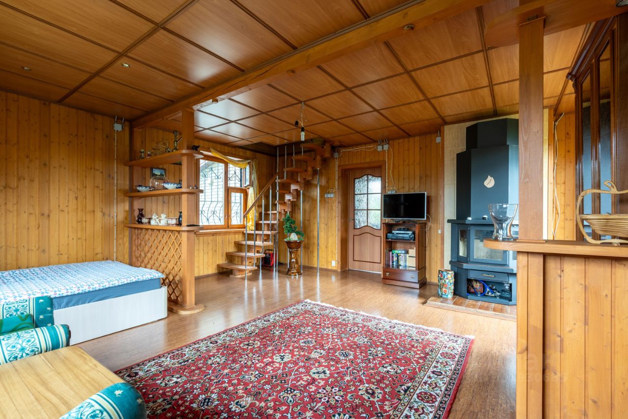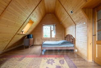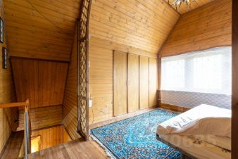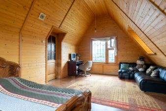 Дом брусовой, теплый (включая полы), обложен в кирпича. Через каждые 5 рядов кирпича имеется арматурная обвязка. Внутри отделка вагонкой. Входная дверь металлическая, дверные замки Cisa (Италия, родные). Вся эл. проводка пожаробезопасная, по СНИПам. Санузел: пол - плитка с электроподогревом. На втором этаже- электронагреватель на 80 литров, имеется разводка для душевой кабины, остекление двух мансардных окон Fakro. Потолок реечный с точечными светильниками. Окна- деревянные стеклопакеты. Имеются оконные декоративные решетки (изготовлены на заказ), приваренные к арматурной обвязке. Покрытие пола- ламинат, на кухне 34 класса. На первом этаже- металлическая печь-камин Лувр. Имеется специальная вытяжная труба на кровле с электромотором, обеспечивающая воздухообмен во всем коттедже (1 и 2 этаж). Мягакя кровля- Гибкая черепица Tegola Comfort Garda Mare 483, цвет синий (на момент строительства была самый дорогой), все комплектующие кровли-тоже Tegola(вплоть до гвоздей и шурупов).