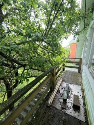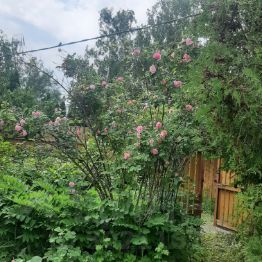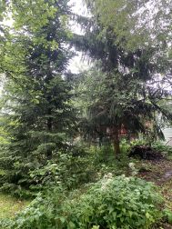 На участке расположены баня, хозяйственный блок, колодец с питьевой водой( стоит на подземном ручье), туалет два септика и открытая автомобильная парковка на два автомобиля, растут плодовые (яблони, вишни, сливы, деревья взрослые плодоносят) и хвойные деревья (ель, пихта, туя), а также плодовые и декоративные кустарники (смородина, крыжовник, малина).
