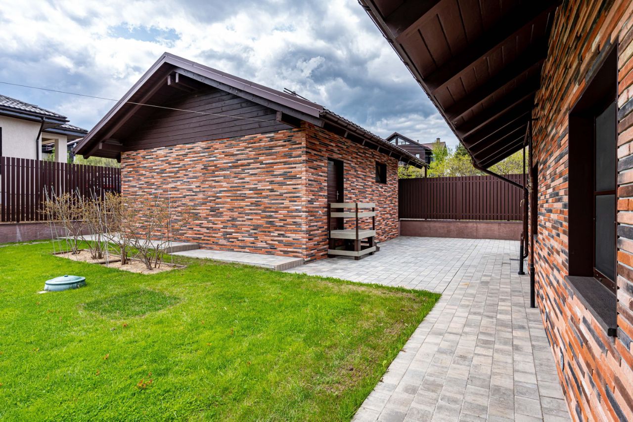 Дом и гараж построены из пеноблока, обложены клинкерным кирпичом.