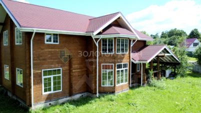 Жилой дом: 350 м2 выполнен из бруса 140 х 190 мм, под внутреннюю отделку на ленточном фундаменте, окна ПВХ, крыша гибкая черепица DEKE с системой водостоков. К дому примыкает большой навес-гараж с хозяйственным помещением.