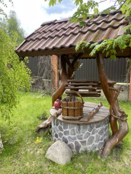 Участок благоустроен: - автополив, - зимняя вода для бани, - установлен колодец для полива, - зона барбекю и отдыха с качелями, - искусственное озеро с подсветкой.