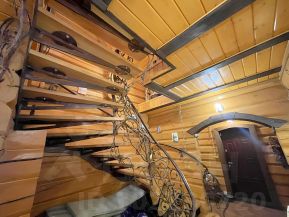 Лестница выполнена из лиственницы с кованым ограждением,что добавляет изысканности.