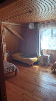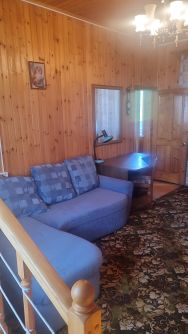 Участок 12 соток под ИЖС. Дом построен из блоков на монолитном фундаменте, снаружи обшит сайдингом. Установлены пластиковые стеклопакеты, крыша - металлочерепица. Стены и потолок обшиты вагонкой, высота потолка около 3 метров, полы деревянные. На 1 этаже: веранда-прихожая, кухня, гостиная, спальня, кладовка, туалет. На 2 этаже: 2 спальни. Коммуникации: электричество, водоснабжение скважина, канализация - септик. Магистральный газ проходит по границе участка. Земельный участок правильной прямоугольной формы, ровный, сухой, огорожен забором из металлопрофиля. На участке находится бревенчатая баня с парной, душевой и комнатой отдыха (печь дровяная). Так же есть два сарая вагонного типа для хозяйственных нужд, теплица 6х3 с системой капельного полива и уличный туалет. Плодовые деревья и кустарники. Круглогодичный подъезд, постоянно проживающие соседи. Участок находится в пешей доступности (10 минут ходьбы) от автобусной остановки, школы, детского сада, поликлиники, магазинов и т.д. До станции Раменское 10 минут на маршрутке или авто. Важно: дом без отопления, так как использовался только в летний период для проживания за городом всей семьей. Продается со всей мебелью и инвентарем (газонокосилка, триммер, холодильник, 2 переносных кондиционера, мангал и т.д.) Полная стоимость в договоре, обременений нет, прописанных нет, прямая продажа.