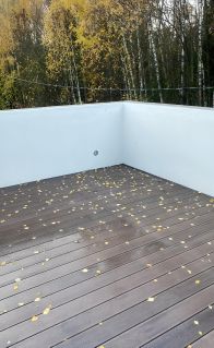-Второй дом по документам оформлен как гостевой дом-баня жб перекрытия, бетонные плиты , жб колонны и перекрытия , заполнение BONOLIT, утеплитель плита пенополистерольная BONOLIT 100 (дом построен по проекту с плоской кровлей и частично с эксплуатируемой кровлей- большая открытая терраса-солярий на 2-ом этаже). Террасы покрыты террасной доской GOODECK на алюминиевом каркасе.