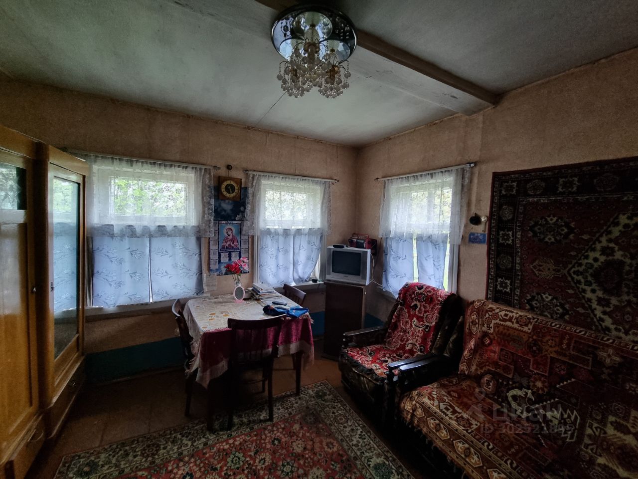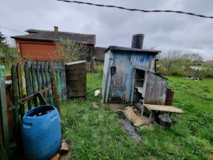 Первый - 1946 года постройки, 26.9 м² жилой площади, 65м² общей, 1 этаж, 3.5 комнаты, по сути требует ремонта, но жить можно, пригоден для круглогодичного проживания. В дом заведено электричество, есть русская печь.