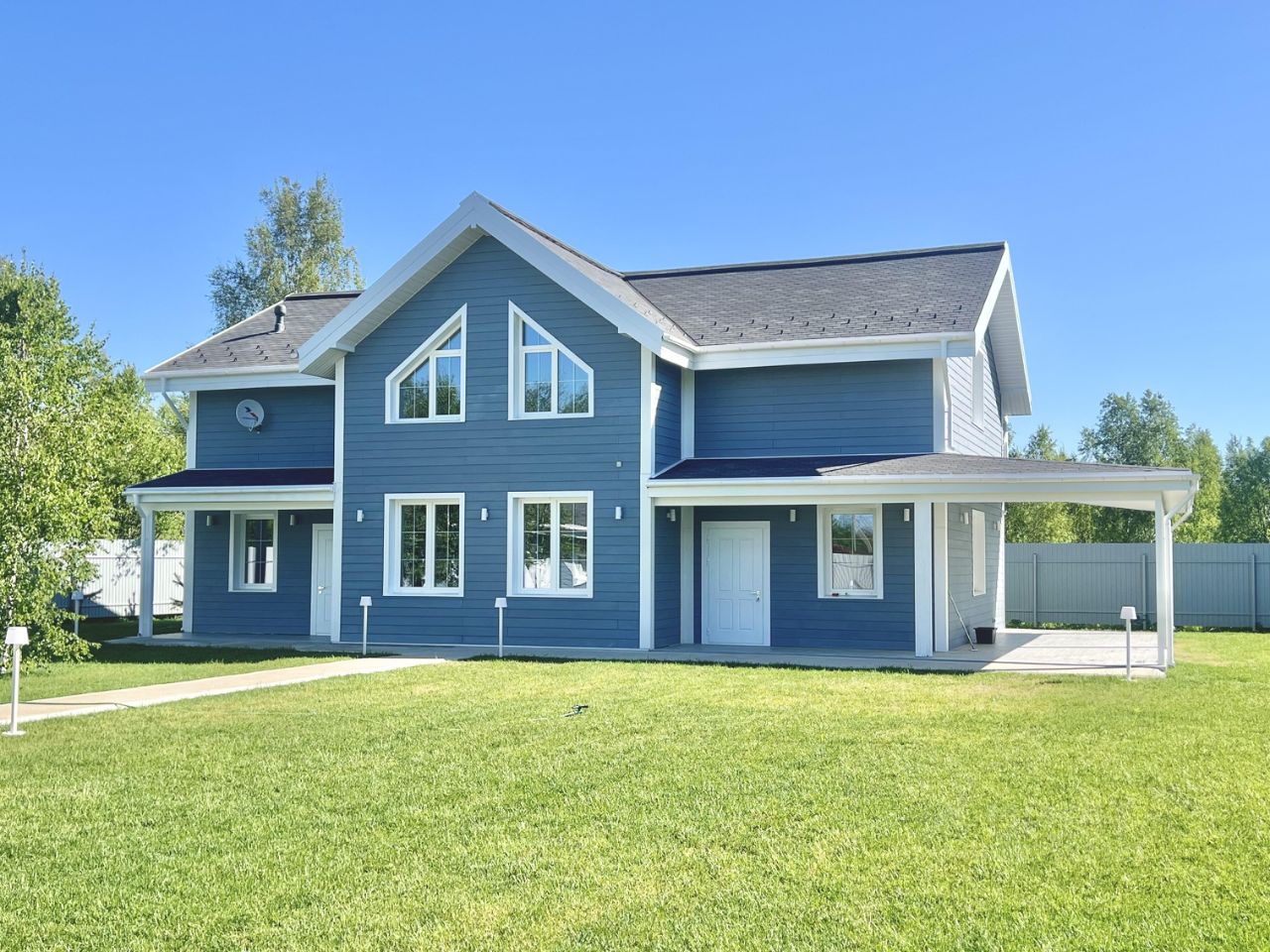 Фундаменты строений выполнены по технологии утепленной шведской плиты (ни каких свай, полноценная утепленная железобетонная плита), дом и гараж построены из высокотехнологического строительного материала, теплого керамического блока с дополнительным слоем утепления снаружи, фасады отделаны фиброцементной панелью. Установлены качественные оконные системы Rehau, с толщиной профиля 86мм.