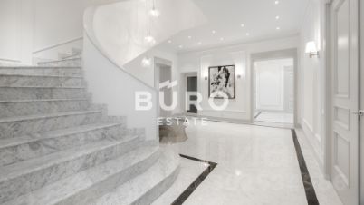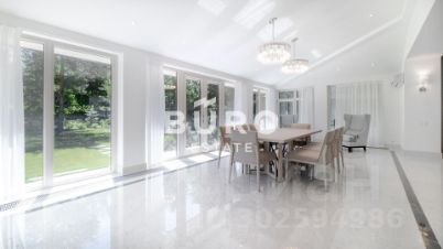 В великолепном особняке с бассейном закончен новый ремонт с использованием высококачественных материалов: мрамора и дерева. Роскошный интерьер в светлых тонах дополнен изысканной мебелью от всемирно известного бренда "Ralf Loren".